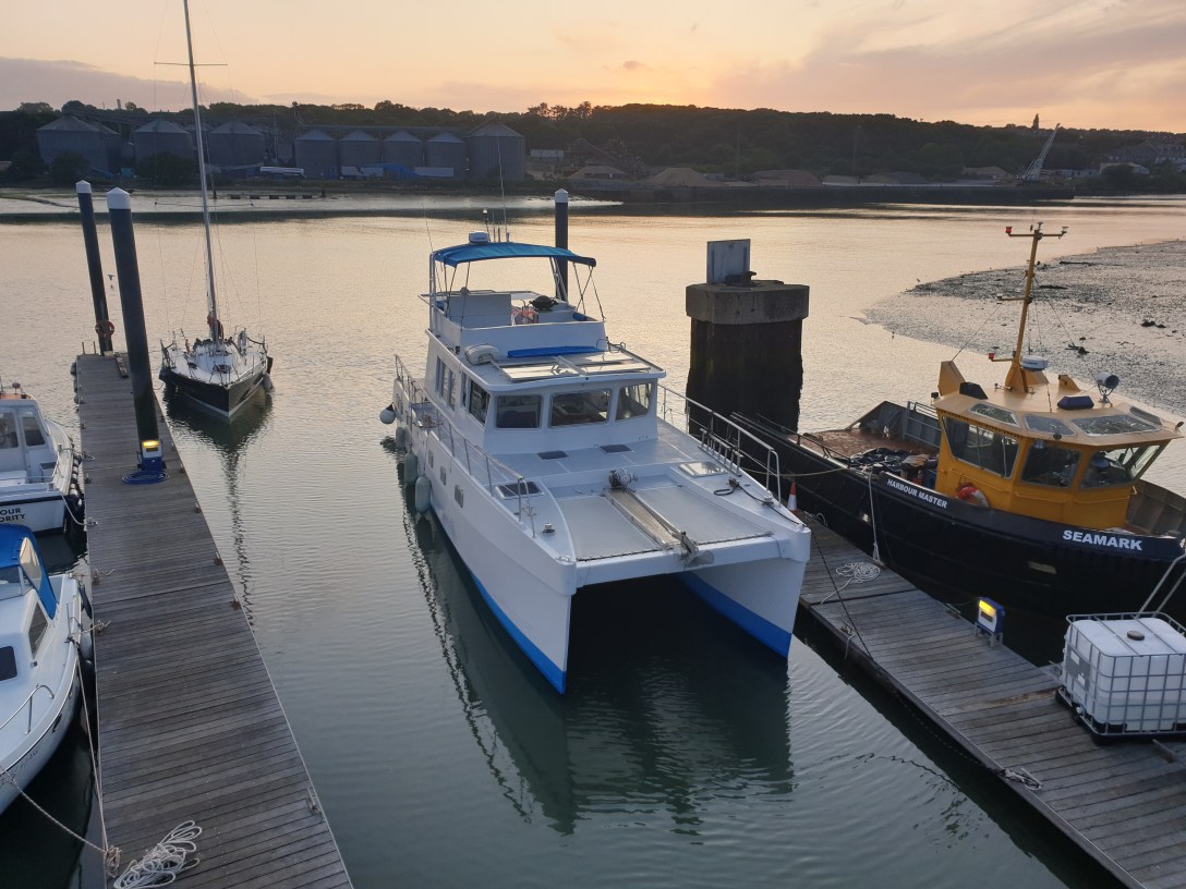 The maximum we could imagine, for a short time as it would deplete the battery very quickly, is probably 7kn, or 25kW of power. However, this could be delivered through two motors, one in each hull. So each motor would draw 12.5kW or about 250amps from the battery pack. This wouldn’t be good, or even possible, with a single battery pack at nearly 2C discharge, so a separate second battery pack would be needed. The motor itself could be rated larger, continuously, than 12.5kW as running electric motors at their maximum for long periods of time can effect the cooling and efficiency. Something like a 20kW motor would probably be fine, one in each hull with a second battery pack.